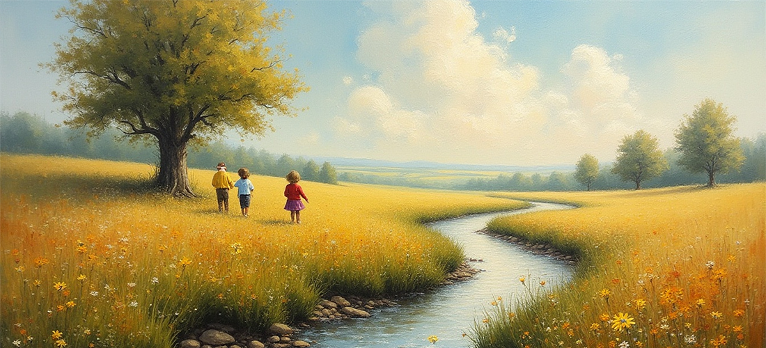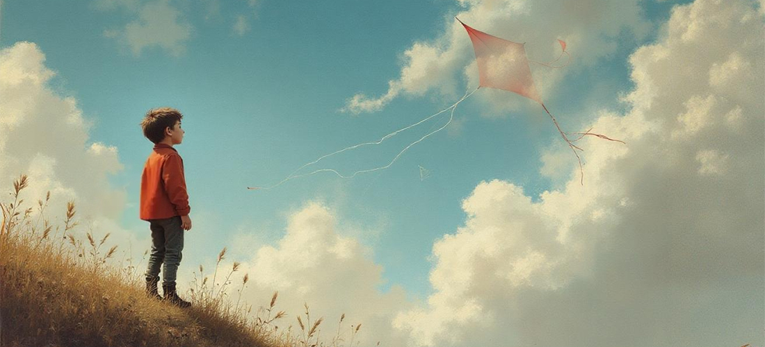 Op een zomerse middag was een klein jongetje op een heuvel aan het vliegeren. Hij had zijn hand stevig om een touw geklemd en ver boven hem danste een grote vlieger in de wolken, totdat de wolken de vlieger versluierden en er niets meer te zien was. Maar het jochie bleef gefascineerd naar boven kijken.