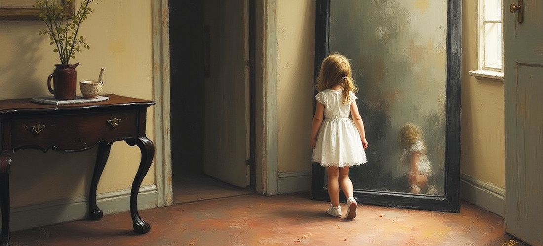 “Opa,” vroeg ze op een dag, “waarom is die spiegel zo wazig? Je kunt er niet goed in zien.”