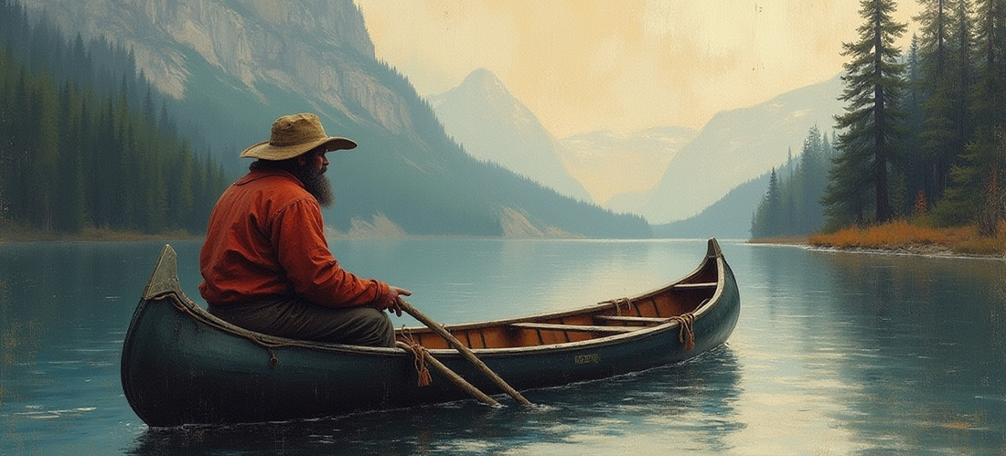 Op een koude dag duwde ik mijn kano behoedzaam tussen de ijsschotsen door. Plotseling hoorde ik, net om de hoek van een uitstekende landtong, zware stappen door het water gaan. Ze klonken zo luid en ritmisch dat ik zeker wist dat er een eland liep. Met mijn geweer in de ene hand en mijn peddel in de andere gleed ik langzaam de bocht door.