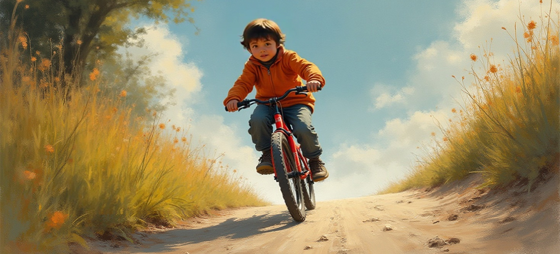 Ik bracht een groot deel van mijn negende zomer op een nieuwe fiets door. Ongeveer een kilometer bij ons huis vandaan ging de weg steil omlaag en eindigde in een scherpe bocht. Op een ochtend liet ik me van de heuvel afrollen en o, wat was dat leuk. Het was pure extase. Remmen leek mij geen goed idee, want dan was de opwinding voorbij. Dus besloot ik om niet te remmen en vertrouwde ik erop dat ik zonder probleem door de bocht kon komen. Maar dat viel tegen.