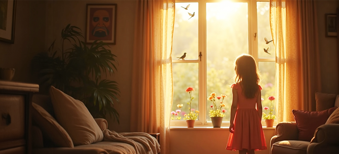 Door haar tranen heen antwoordde ze: “Ik bedoel geen verrassingen in de woonkamer. Ik bedoel een verrassing zoals gistermorgen, toen het zo zacht regende, en de verrassing van vanmorgen toen de zon zo prachtig door de ramen scheen. En morgen zal ik vast wel weer de verrassing van de kleine musjes zien die geduldig wachten op hun broodkruimels.”