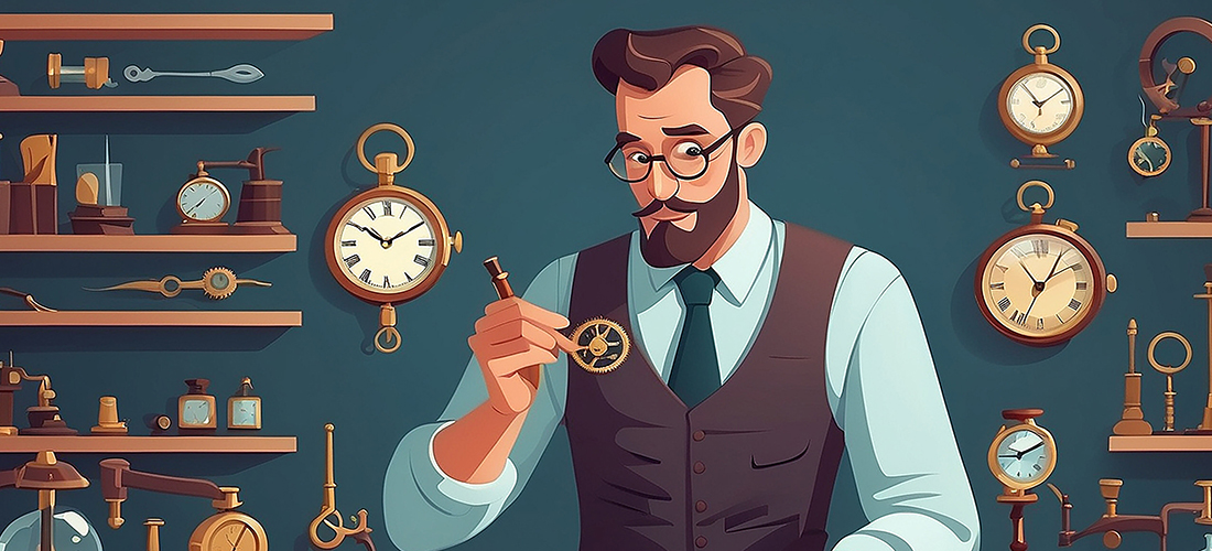 De klokkenmaker legde zijn werk neer en zei: “Niet echt. Eigenlijk wacht die klok gewoon.”