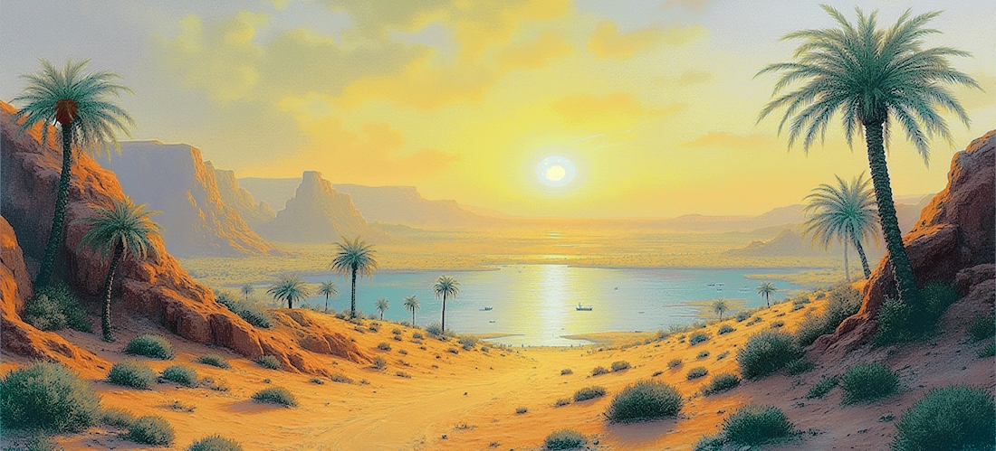 Maar toen… begon het landschap te veranderen. In de verte verschenen groene vlekken. Hier en daar stak een sprietje gras de kop op, en uit de uitgedroogde aarde bloeiden plotseling tere bloemetjes op. Hoop ontwaakte. De reis naderde haar einde en nieuw leven, verfrissend en rijk, stond mij te wachten.